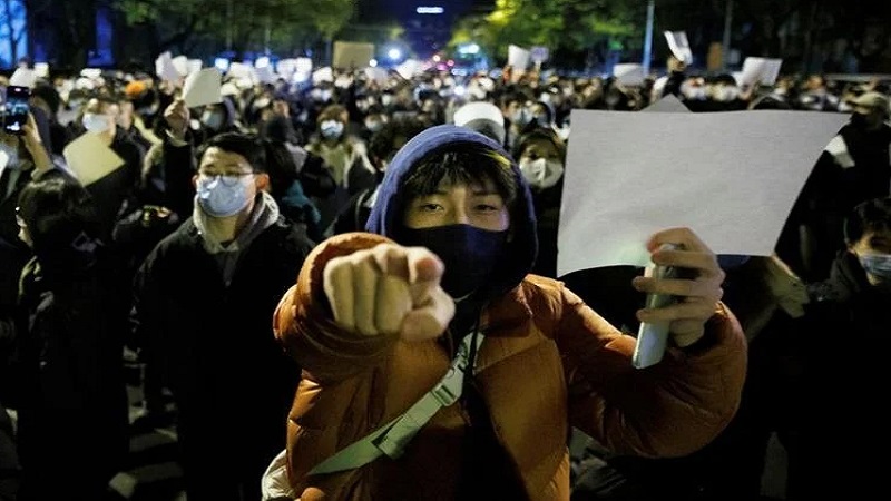 ব্রিটিশ বার্তা সংস্থা রয়টার্সের প্রতিবেদনে বলা হয়, করোনাভাইরাস ছড়িয়ে পড়ার পর তিন বছর ধরে ভাইরাসটির বিরুদ্ধে নেয়া বিধি-নিষেধের বিরুদ্ধে বিক্ষোভ চলছে।আরও পড়ুন ঃ
