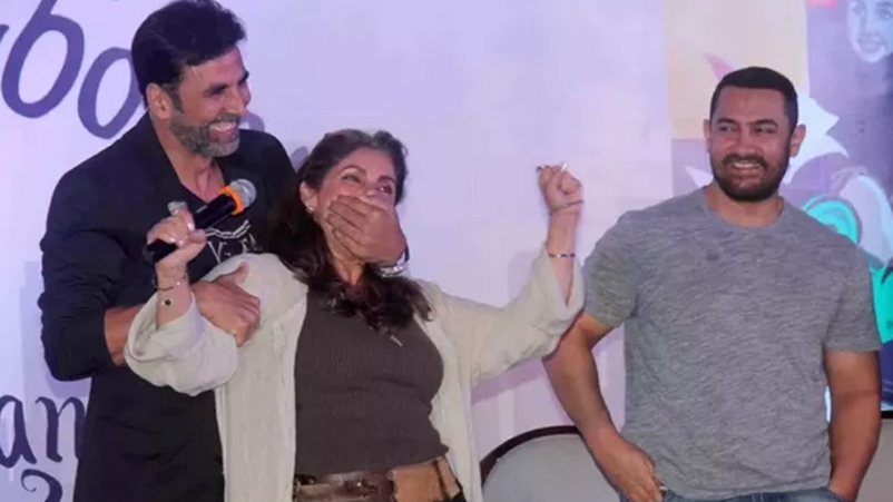 মঞ্চে দাঁড়ানো বলিউড অভিনেতা অক্ষয় কুমার ও আমির খান। এ দুই অভিনেতার মাঝে মাইক্রোফোন হাতে দাঁড়িয়ে অক্ষয়ের শাশুড়ি অভিনেত্রী ডিম্পল কাপাডিয়া। হঠাৎ পেছন থেকে শাশুড়ির মুখ চেপে ধরেন অক্ষয়। আর এ দৃশ্য দেখে হাসতে থাকেন আমির খান।আরও পড়ুন ঃ