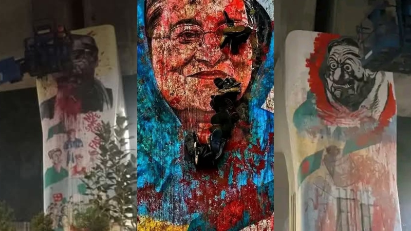ঢাবিতে ‘ঘৃণাস্তম্ভের’ গ্রাফিতি মোছার চেষ্টা। কোলাজ- ডেইলি বাংলাদেশ