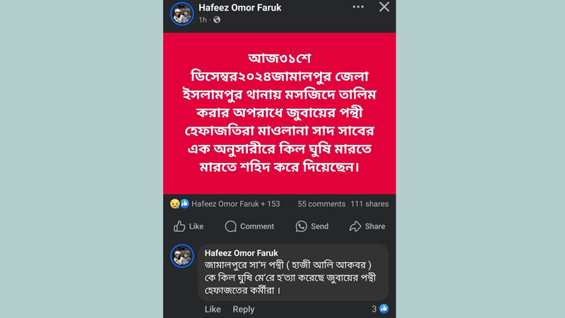সাদপন্থী অনুসারীকে কিল-ঘুষিতে হত্যা করার ঘটনাটি ‘গুজব’