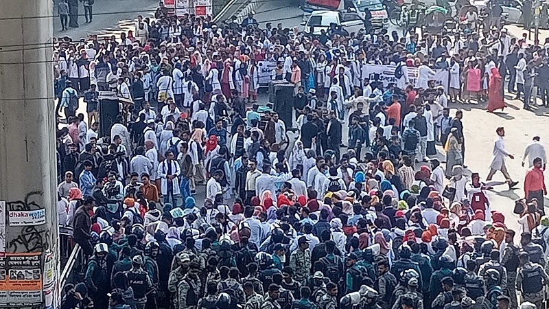শাহবাগে ট্রেইনি চিকিৎসকদের অবরোধ